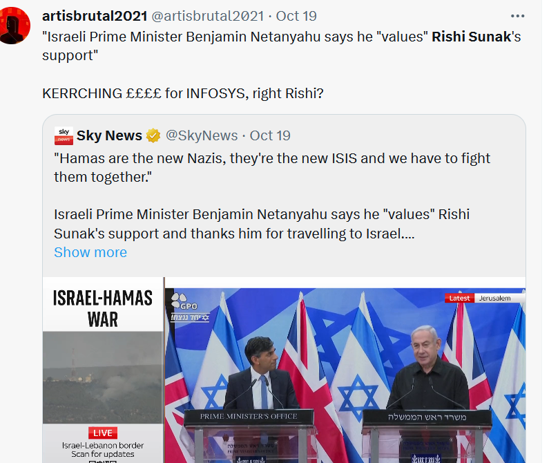 Sunak has defended in parliament Israel’s collective punishment of Gaza and its evacuation order to move over a million people from the north of the territory. He said the latter was “absolutely right”, claiming this was about protecting civilians...
