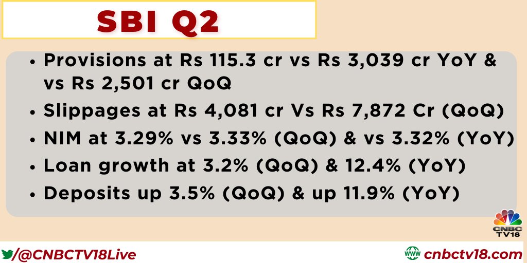 #2QWithCNBCTV18 | @TheOfficialSBI reports #NIM at 3.29% vs 3.33% (QoQ) & vs 3.32% (YoY)