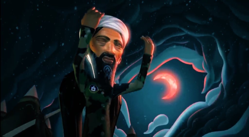 The short CGI clip released in 2013 “I Pet Goat II” shows how the buildings of twin towers blew up and next shot is “Usama Bin Lade” with a CIA emblem.