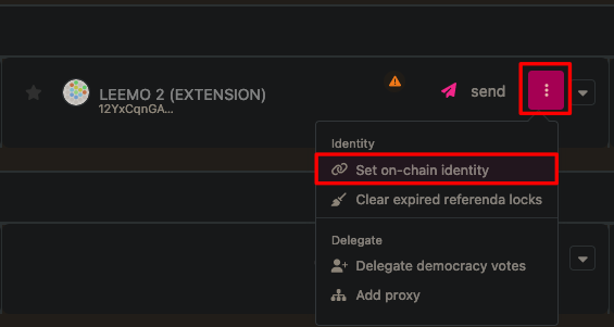Press the 3 vertical dots next to your account and then select Set on-chain identity