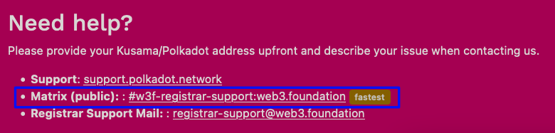 Go to the web3foundation registrar website: registrar.web3.foundation