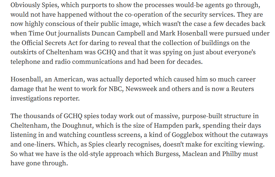 "The old methods no longer work. A few years ago MI6 ran a test to see how long it would take for an officer's cover to be blown through online searches. The answer, around minute."