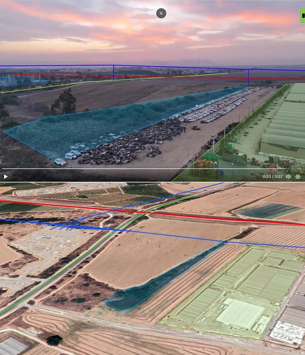 When Hamas terrorists entered this area they destroyed a Merkava and the video (30+ mins) ended with a massacre of at least 8 civilians in Nir Oz.
