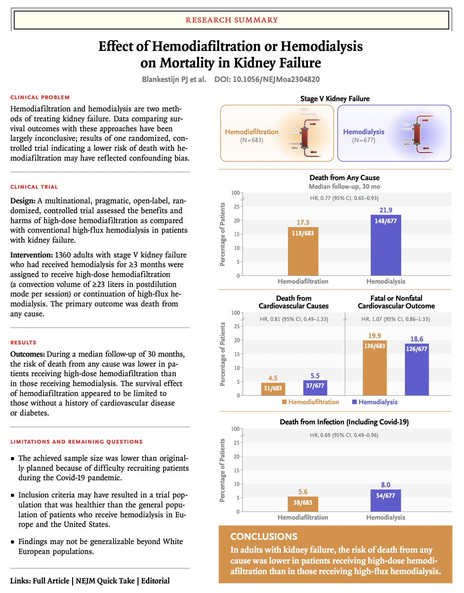 This summer, we saw a randomized controlled trial of modifying dialysis to use convection rather than diffusion…and the result? Significant reduction in total mortality.