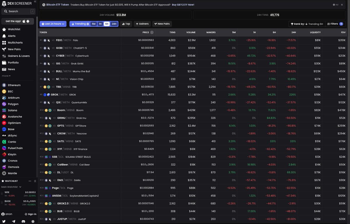 Having a network with like-minded people also helps a lot, in that way, you can shill coins with each other and use @dexscreener to check it out.