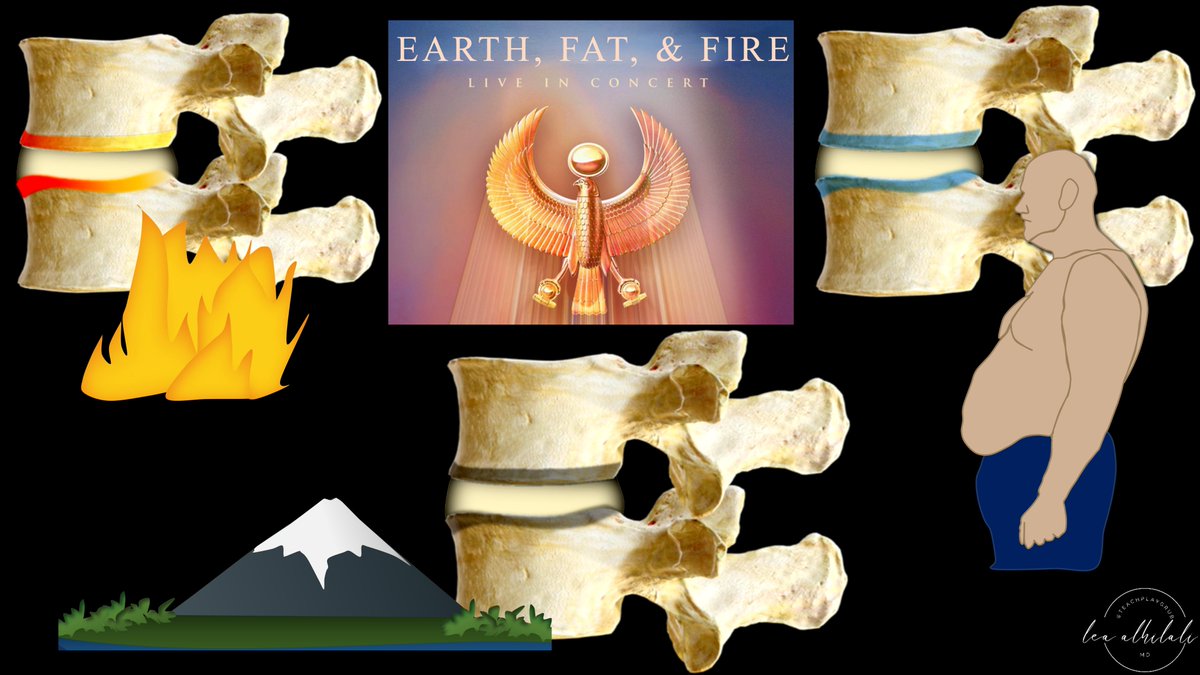 6/I remember these bc the forces at work in the endplates are like the famous astrology signs—almost. Instead of earth, wind, & fire—it’s earth (sclerosis), fat, & fire (inflammation)