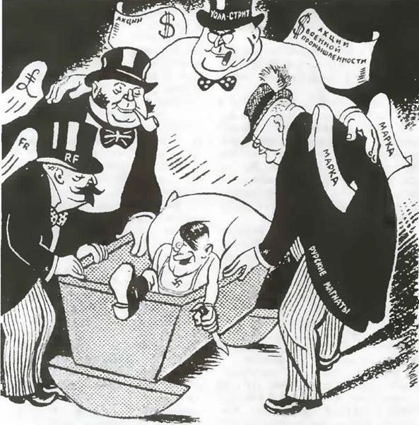Ya en la primera mitad de la década de 1920, los oligarcas occidentales financiaron al Partido Nacionalsocialista de los Trabajadores Alemanes a través de bancos en Suecia y Suiza. +