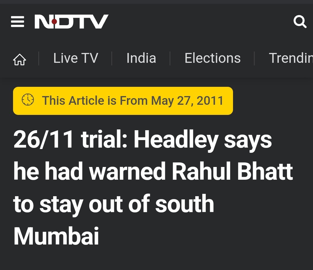 26/11 TERROR attack mastermind informed the court that he asked Rahul Bhatt son of #Bollywood's Mahesh Bhatt & brother of Alia Bhatt to stay out of South Mumbai on 26/11