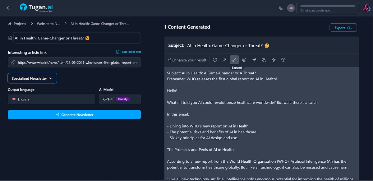 Tugan AI is just too good at creating world-class content