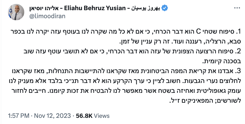 [12] “We can certainly restore settlement in the [Gaza] Strip”