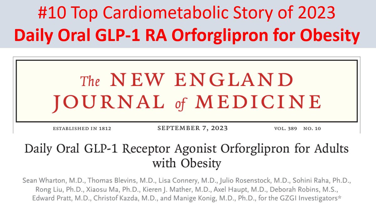 Number 10 Top Cardiometabolic Story of 2023: Oral #orforglipron, a nonpeptide GLP-1 receptor agonist, was associated with weight loss of almost 15% with similar side effects to injectable GLP-1 receptor agonists.
