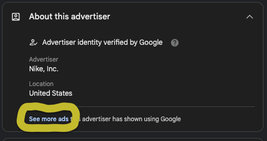 It also provides information about the advertiser, thanks to Google's advertiser identity verification initiative.