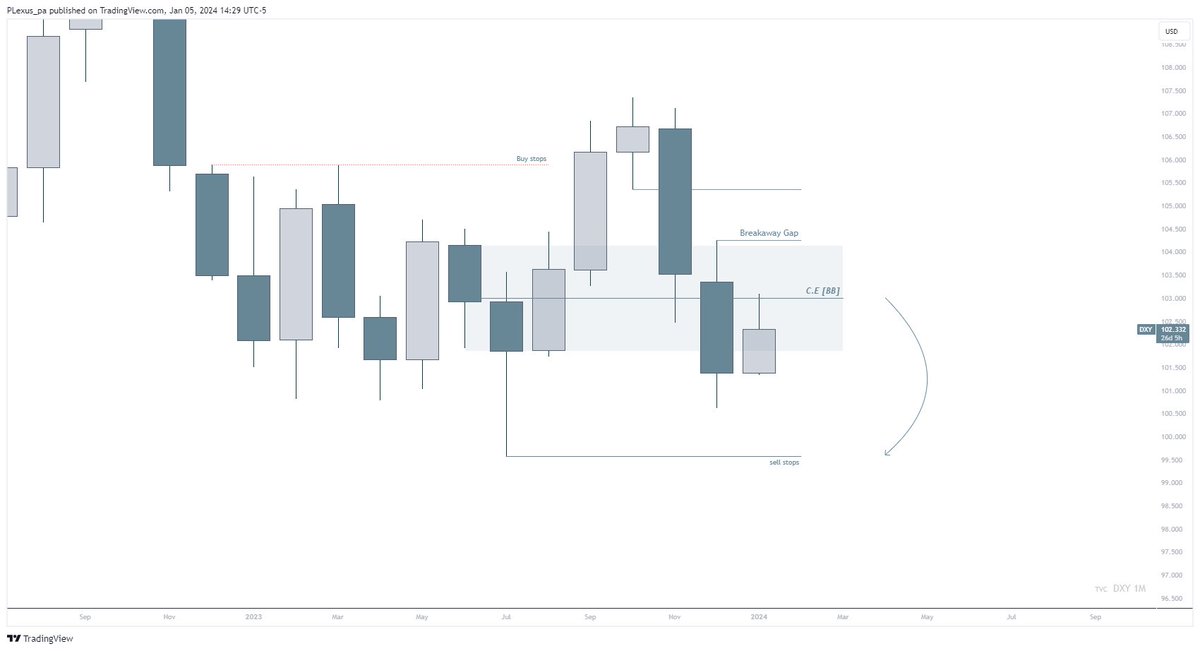 The previous monthly candle closed below the body of Monthly order block, which should act as a Breaker Block now and we can see price has already reached its CE/mean threshold.