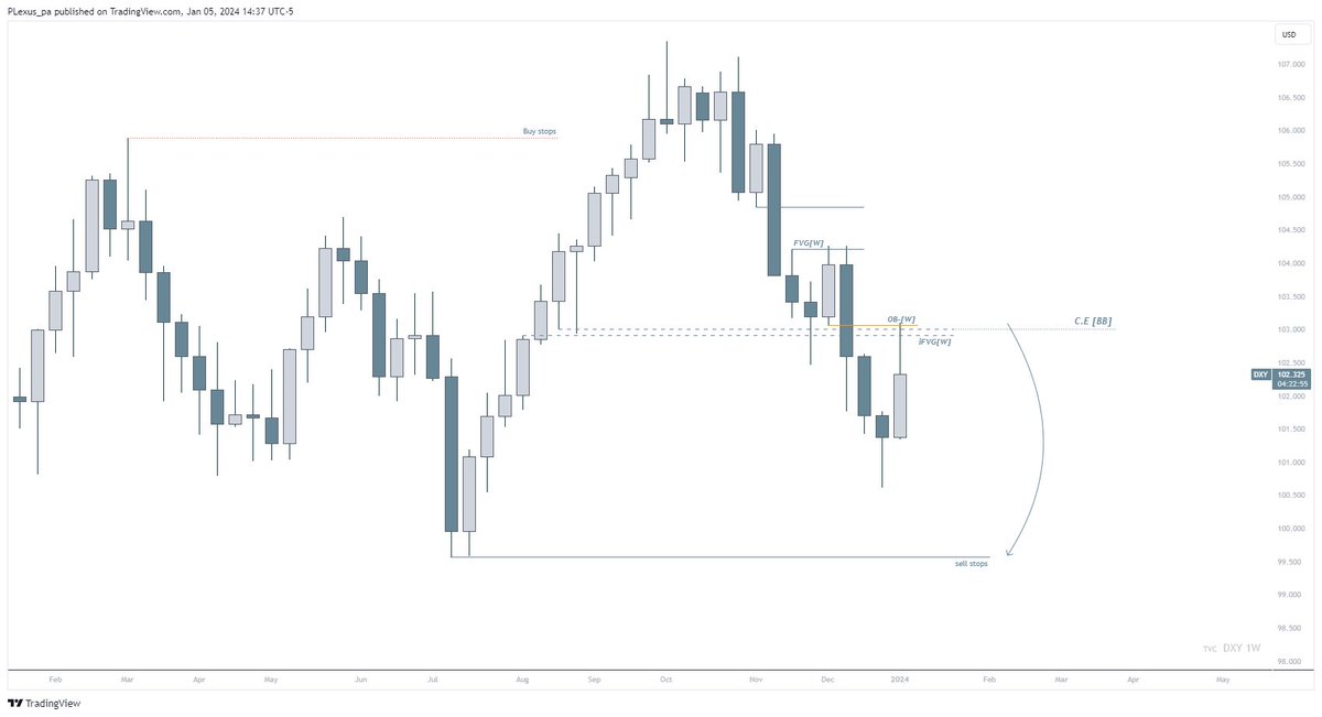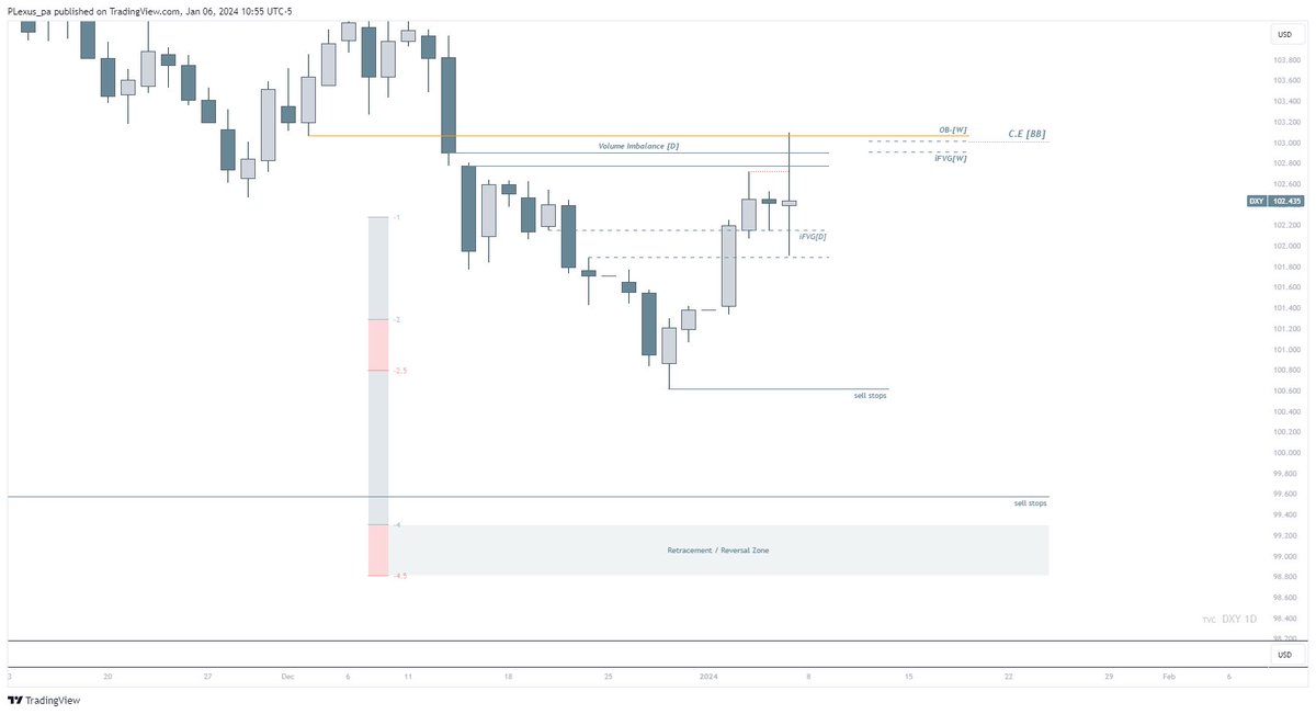 On weekly TF, we can see price already traded into weekly FVG, inverse FVG and weekly FVG which, combined together are a strong confluence to resist price going higher and send them lower