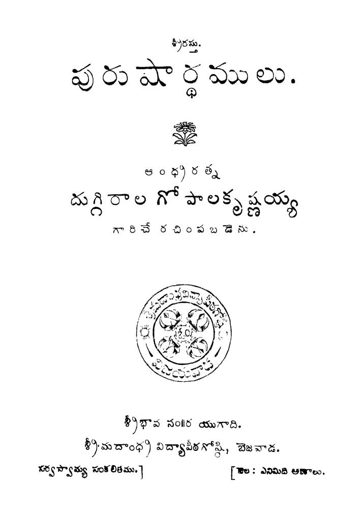 His work పురుషార్థములు, talks about puruṣārthas dharma, artha, kama, moksha in detail. Starting from defining to employing in real life, this superb work expounds his Dharmic mind.