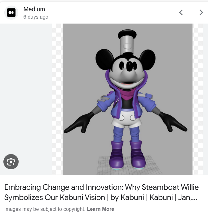 "Steamboat Willie, the early incarnation of Mickey Mouse, resonates deeply with Kabuni’s mission. Debuting in 1928, he was more than a cartoon character; he was a symbol of innovation, bringing sound to animation."