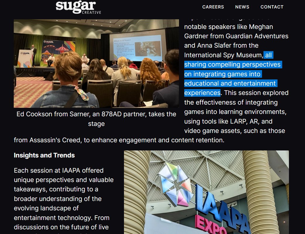 Sugar Creative Director, Jason Veal, took part in the panel "Shall We Play a Game? Using Gamification In Your Experiences." alongside other notable speakers like Meghan Gardner from Guardian Adventures and Anna Slafer from the International Spy Museum..