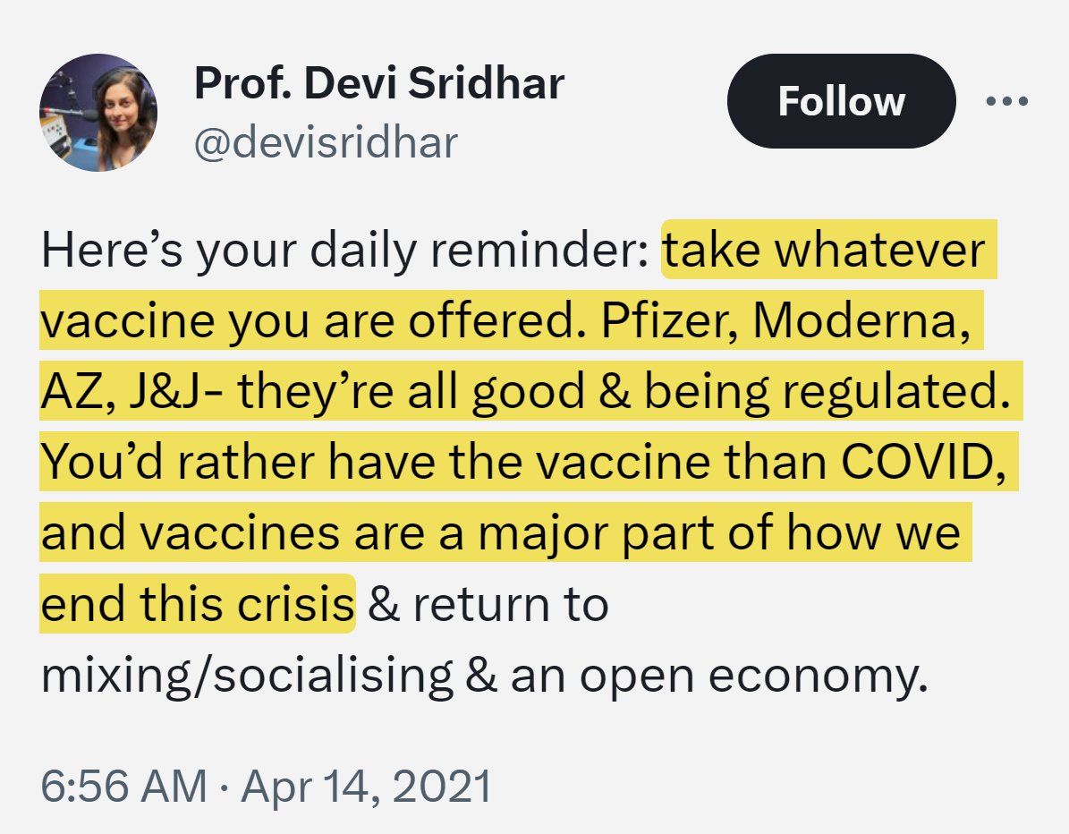 #14 Hello @EdinburghUni. I lost my career as a scientist because I made factual statements about Vitamin D. This woman (@devisridhar) sponsored by the @gatesfoundation has deliberately lied about vaccines, lockdowns & masks and is still employed by you. How is this even possible?