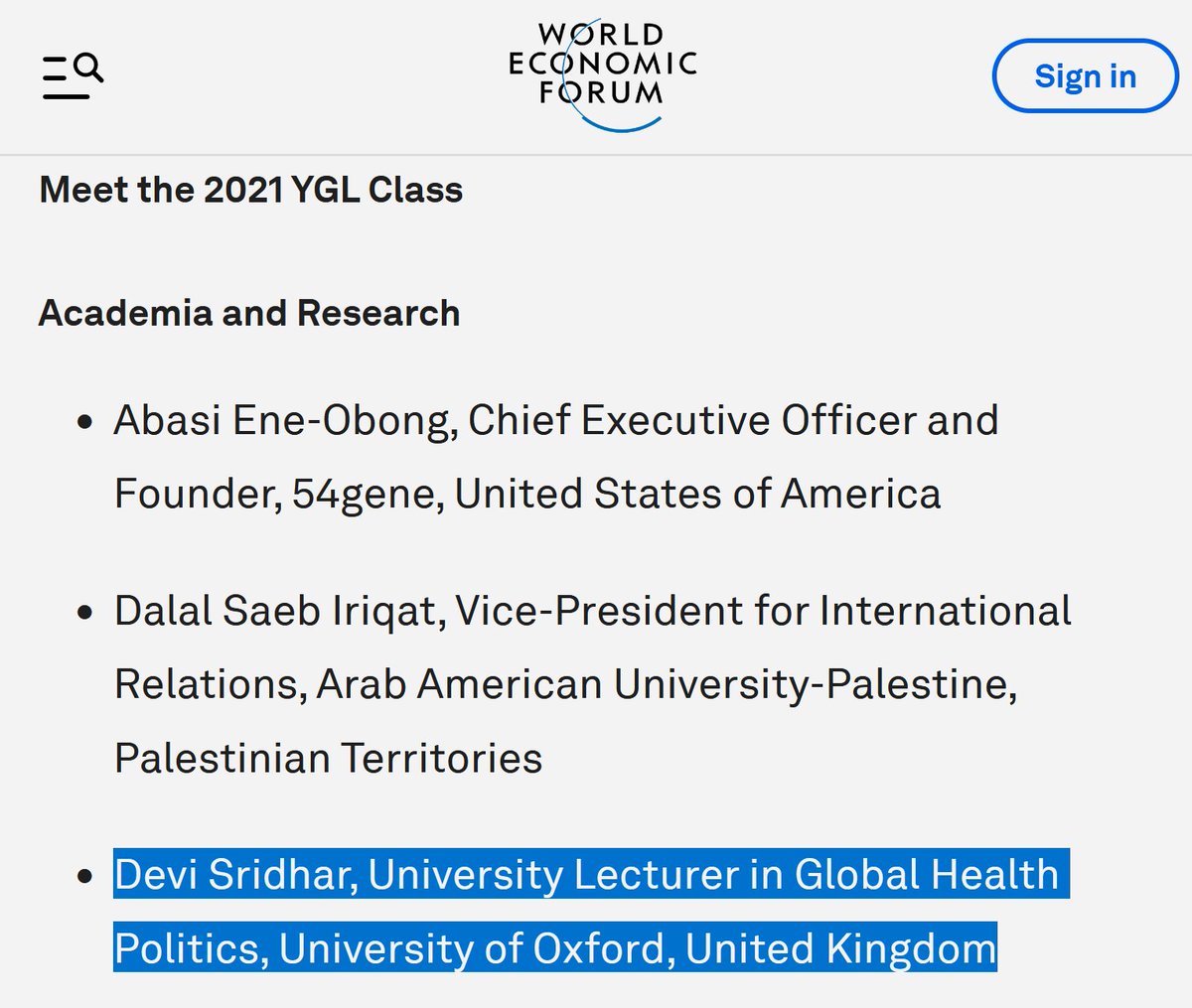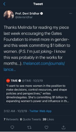 #12 Devi Sridhar is a @wef Young Global Leader and has been simping for the @gatesfoundation for years. Her public statements are primarily made for the Gates-funded @TheGuardian. With her media presence, she has put lots of pressure and is therefore complicit.