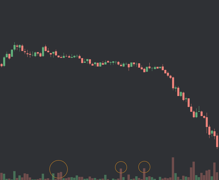 The 1 min shows us the volume spike was created by a selloff & consolidation spikes were bearish