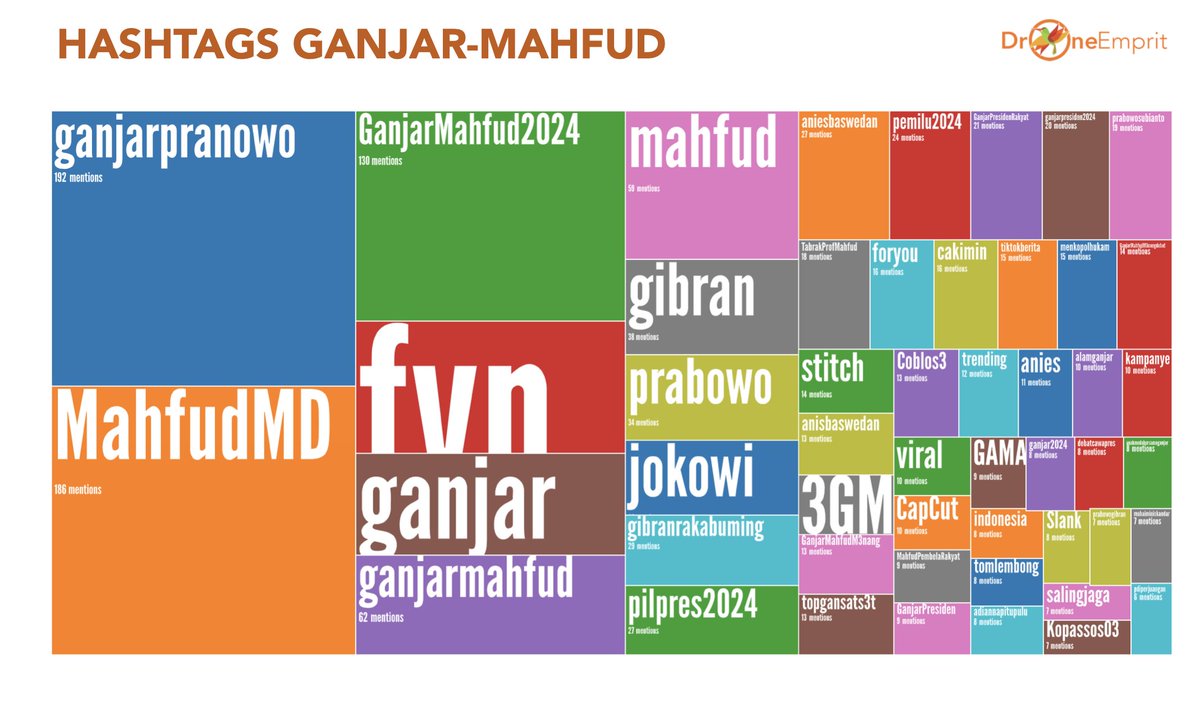 Ganjar - Mahfud MD: Dengan total interaksi 570,797,272, Ganjar - Mahfud MD berada di tengah-tengah dalam hal jumlah interaksi dibandingkan dengan dua entitas lainnya.