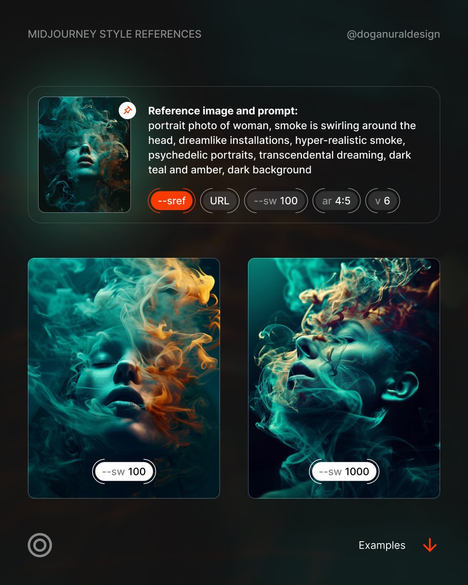 portrait photo of woman, smoke is swirling around the head, dreamlike installations, hyper-realistic smoke, psychedelic portraits, transcendental dreaming, dark teal and amber, dark background --ar 4:5 --style raw --sref s.mj.run --sw 100 --v 6