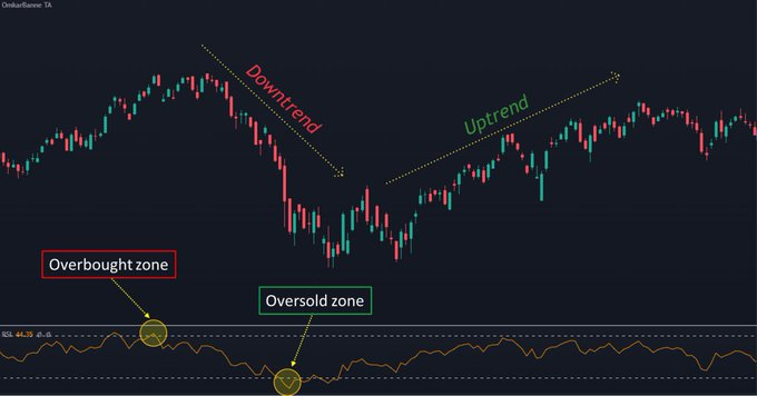 - RSI is used to identify potential trend reversals and overbought or oversold conditions