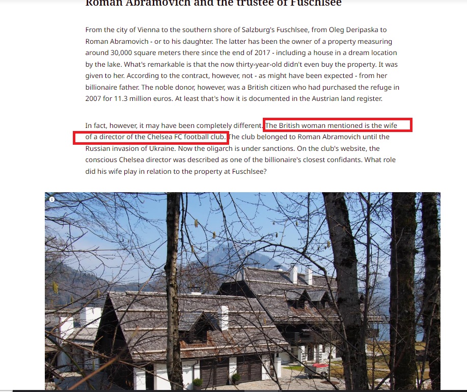 "They showed that the property’s buyer — a British woman whom locals believed to be an investment banker — was in fact a cut-out for Abramovich."