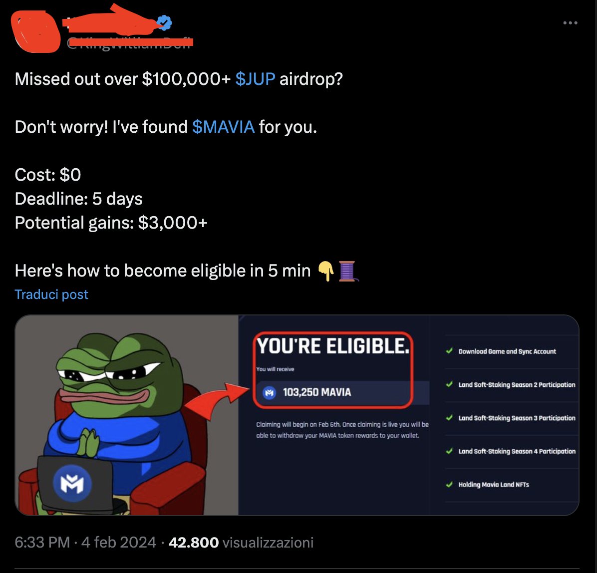 1: Not verified information: for $MAVIA there was a cap of 100,000 users getting the airdrop and the cap was reached at the time of the post 😂
