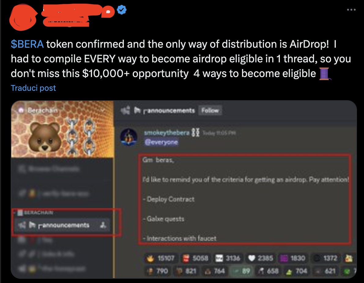 I was happy to see that there is no message like this on their Discord (Happy because announcing the criteria would mean that we're all going to enjoy our $BERA airdrop worth 3$)