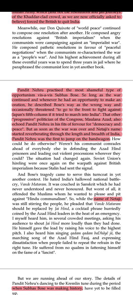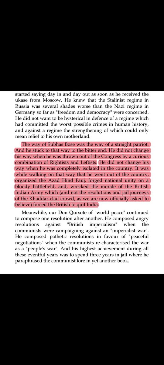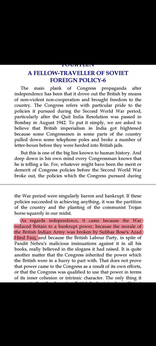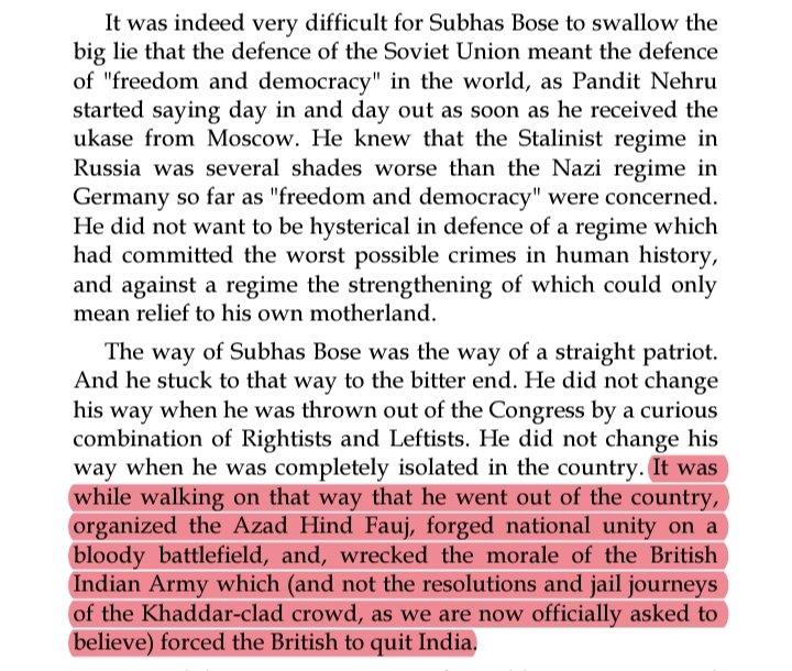 3. Reason he pointed out as to why according to him Netaji was not a national hero was bcz Bose didn't believe in our people's capacity to achieve freedom from Foreign rule...3/n