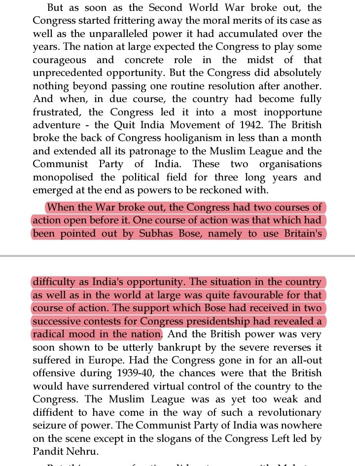 ..and pressing moment of decision making days of entire freedom struggle that is during outbreak of world war 2 Congress had two options one was what congress took as an option other was what Netaji decided and here Goel is arguing - Had Congress gone the Bose way.. 14/n