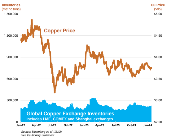 Fmr CEO Richard Adkerson commented that demand weakness in Chinese real estate was offset by investments in the grid, green economy, manufacturing.