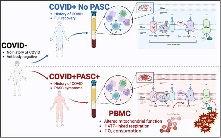 Peripheral blood mononuclear cells (PBMCS), which include various immune cells, exhibit changes in mitochondrial function in individuals with long COVID.