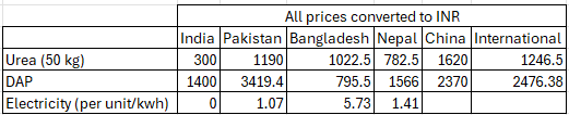 Coming to the subsidies, In India, agricultural subsidies rank among the highest in the region (See the chart below). A comparison of key inputs such as UREA, DAP, and electricity retail prices underscores this reality. Additionally, the government heavily subsidizes capital, with agricultural loans starting at an interest rate as low as 4%. I wanted to compare the cost of capital too with other neighbouring countries but couldn't find sufficient data.