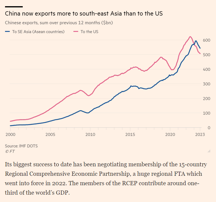 Meanwhile these new FTA agreements, largely with the developing world, ensure that "industrialization 2.0" advanced manufacturing exports — categories like EVs, batteries and clean energy — are flowing disproportionately to the developing world.