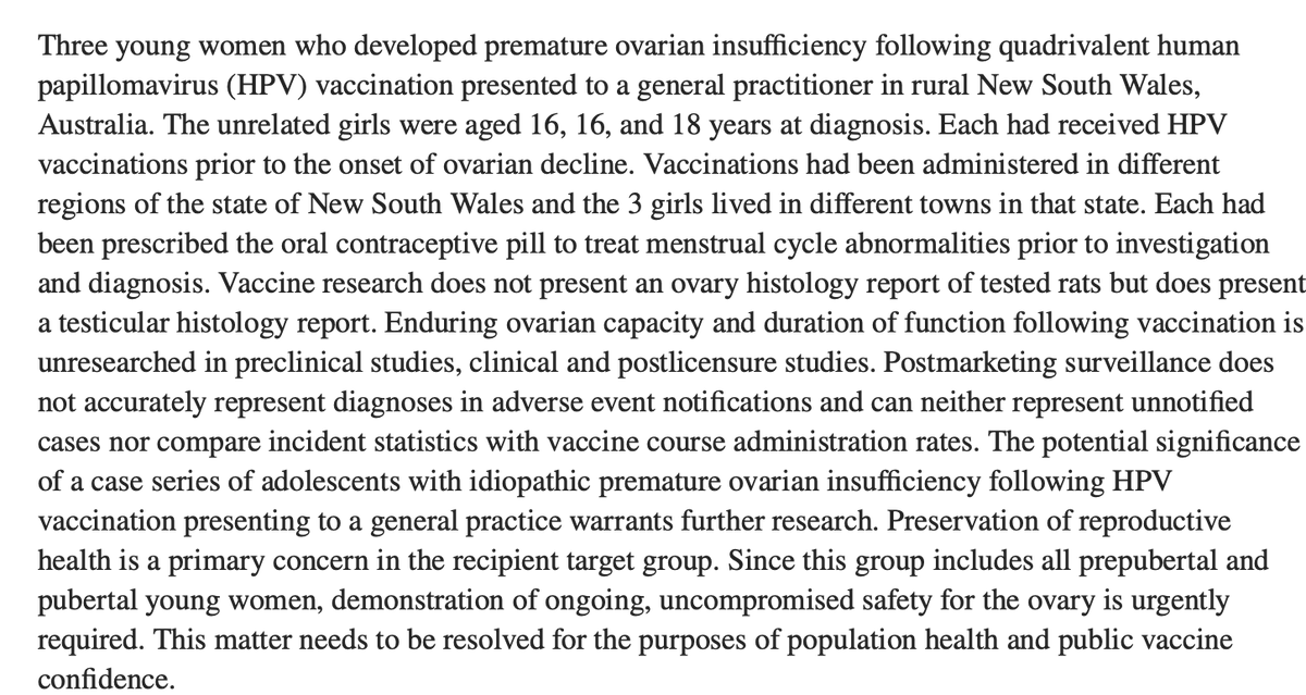 That isn’t the only paper that has found problems related to fertility potentially related to Gardasil. This study shows that miscarriage and premature ovarian failure are potential issues.