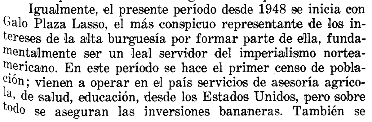 Apuntes sobre el período de 1948-1963 en Ecuador. Según los progresistas este fue un "período formidable de estabilidad democrática". A continuación algunas capturas del libro "La ideología burguesa en Ecuador" de Marcelo Ortíz Villacis.