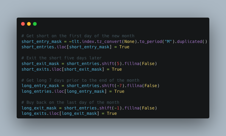 • Real quant code to backtest strategies