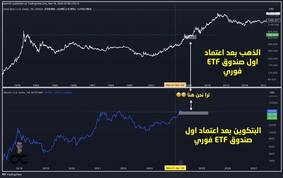 توقف مؤقت للذهب مع هبوط قد يصل -٢٠٪ ثم بداية مناورة صاعدة وقد تكون هذه المحطة الاخيرة للبتكوين ماقبل ان يكون بالكامل في نصيب المؤسسات وان يصل للاستقرار السعري وان يصبح كما المؤشرات والاصول ثقيلة الحركة لوجود اكتظاظ مالي به