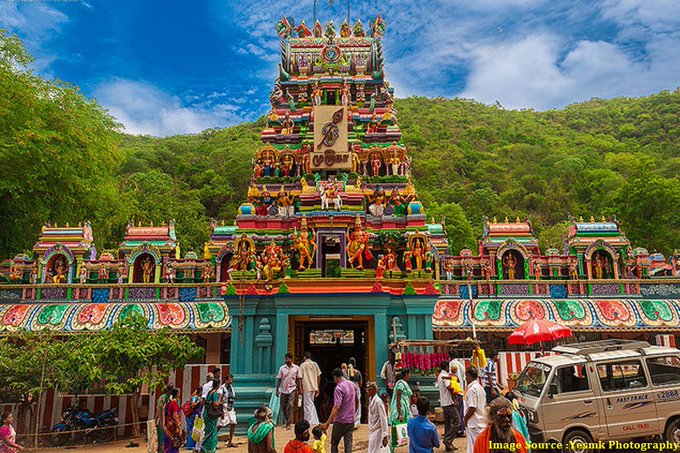 5. Thiruthani Murugan Temple - Thiruthani, Thiruvallur district. Murugan got back his inner peace here after the war with the asuras. The name Thiruthani means "blissful repose" and it is here that Murugan met Valli and fell in love. Murugan & Sri Valli got married here.