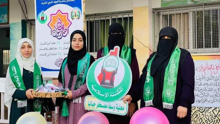 Hamas' women legions holding a Mawlid in Jabaliyah Camp in N. Ghazza, 2016