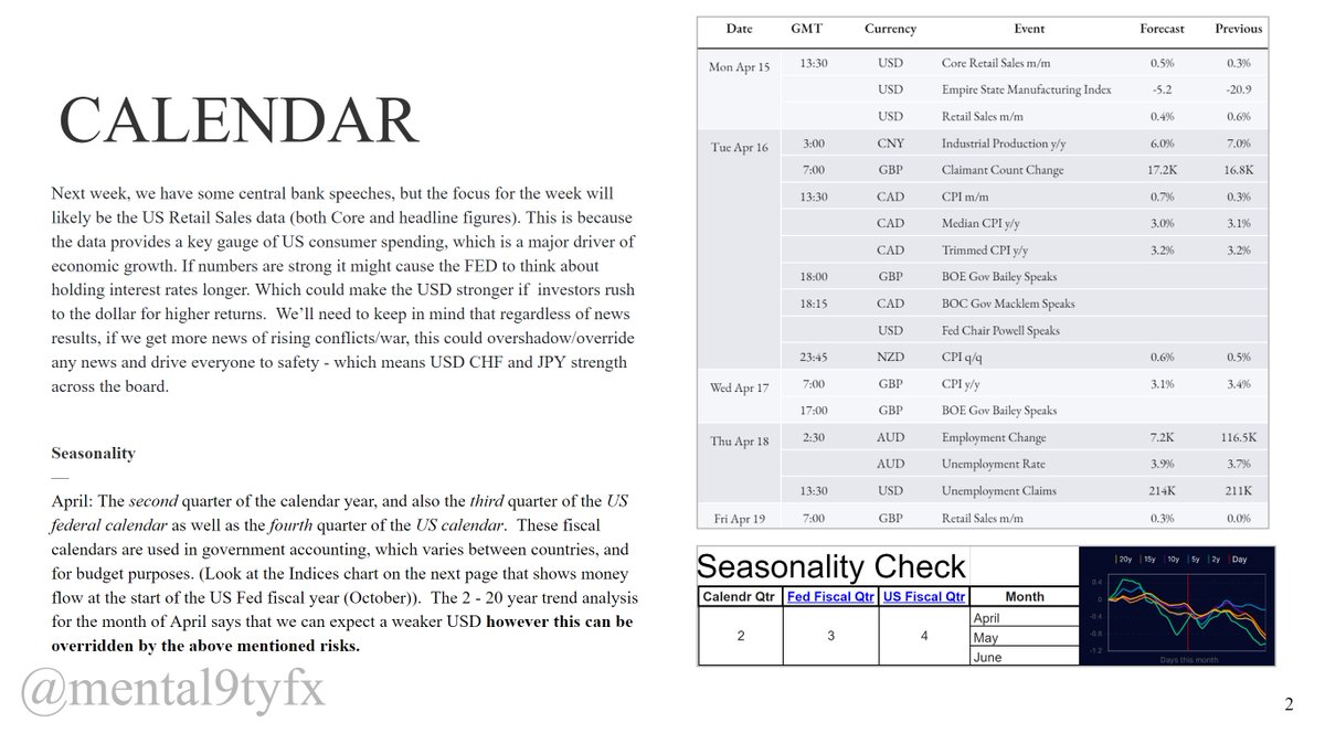 Calendar, Relative Strength and Analysis - 15 APR 2024