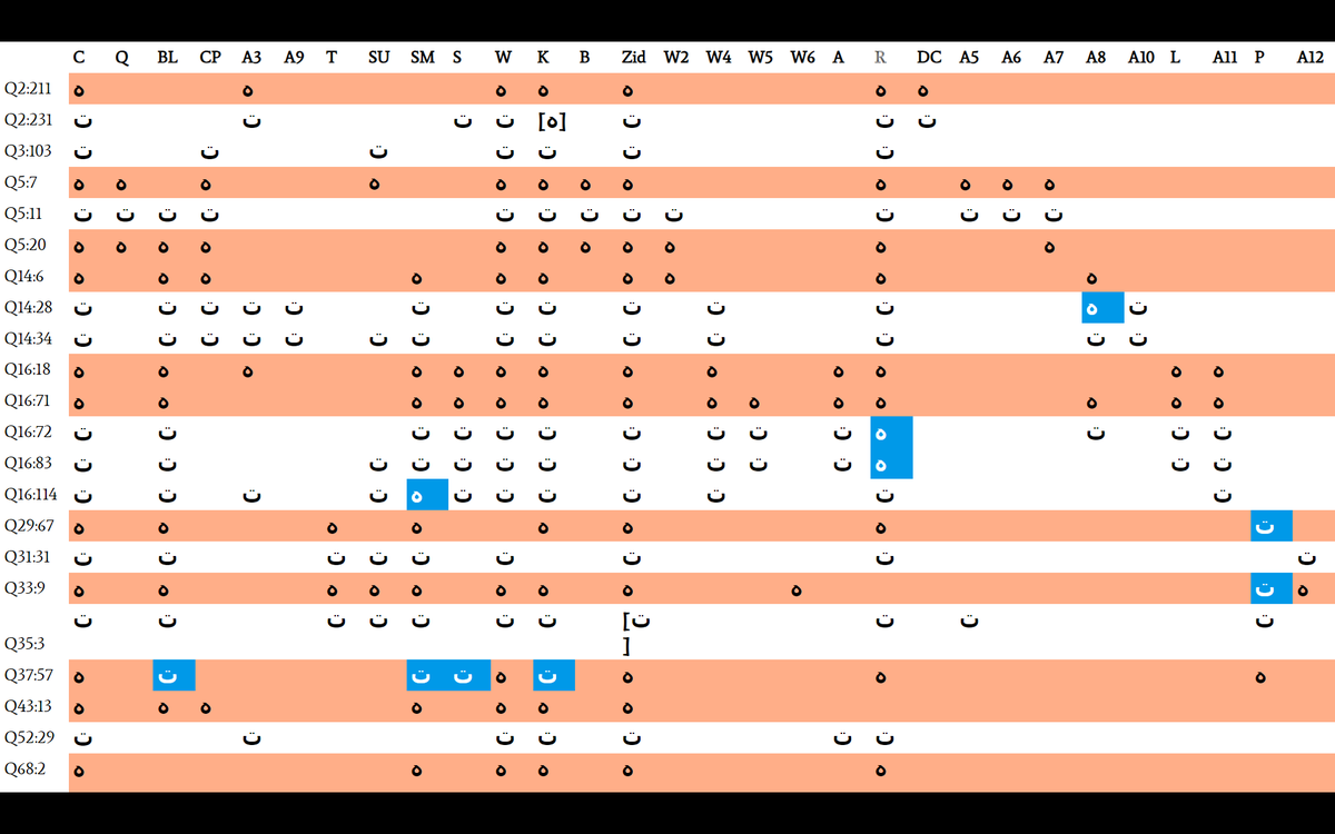That is when I wrote my "Grace of God" article, where I show that the idiosyncratic spelling of the phrase niʿmat aḷḷāh is almost perfectly reproduced in all early manuscripts.