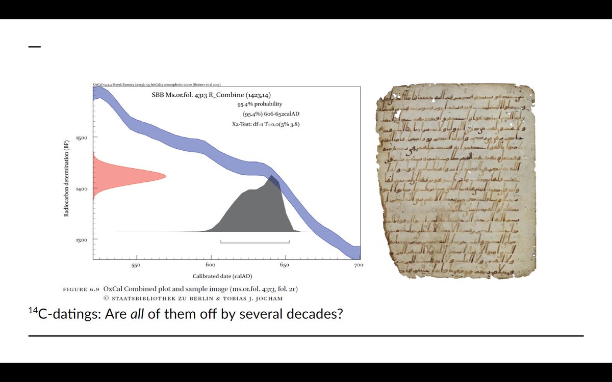 But hey, physics was broken irreparably because "Three body problem"-style aliens interfered, and we really can't trust the radiocarbon dating. Does the argument depend on that? Not at all! Déroche himself is quite skeptical of carbondating and still argues for ʿUṯmān.