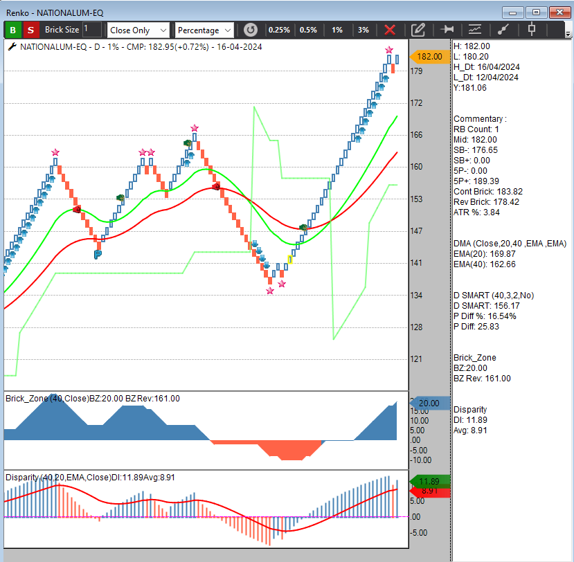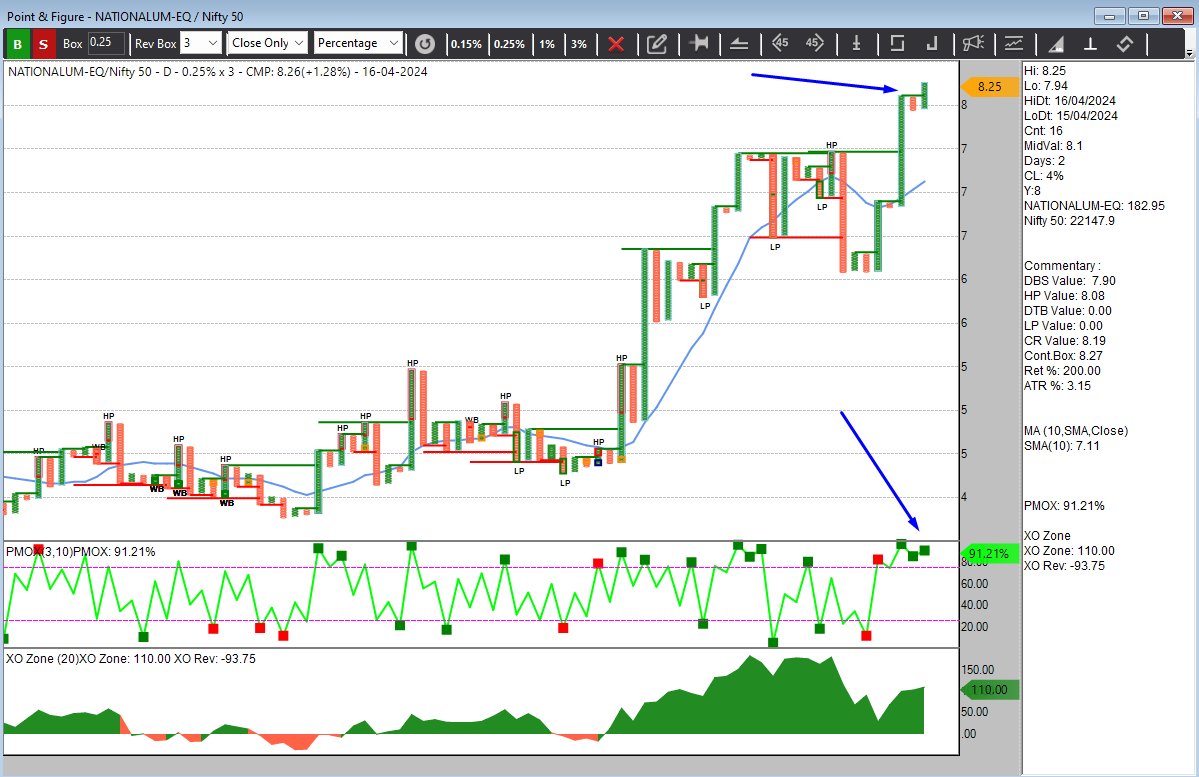 1) NATIONALUM - notice the bullish divergence in RS charts (in RENKO, RS chart has already given swing breakout while price chart is a probable one back bullish pattern. In P&F, RS chart has already given a bullish double top buy while in Price charts it is a probable breakout candidate)