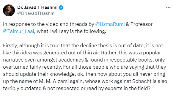 Now i want to make it clear that post-Orientalist scholars and in Islamic Law in particular the post- Schachtian scholars are doing different job but still a good majority part of them are still intentional, filled with presuppositions.