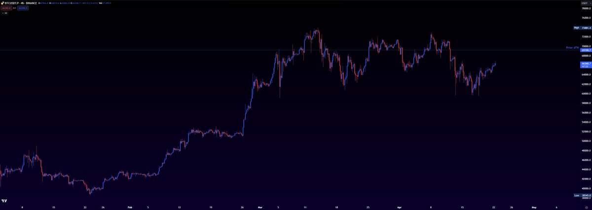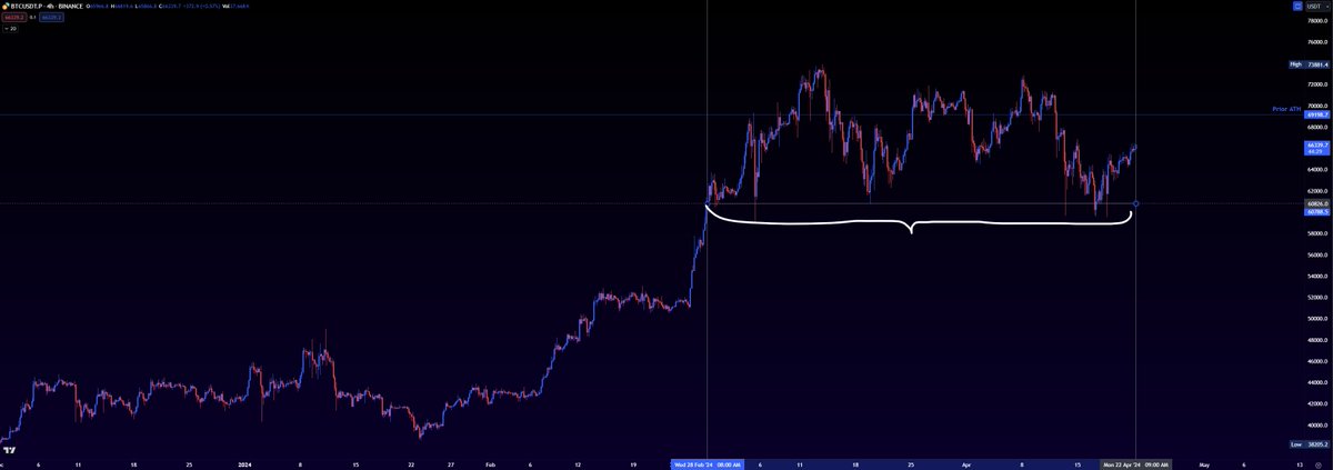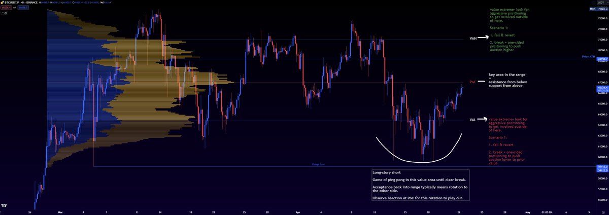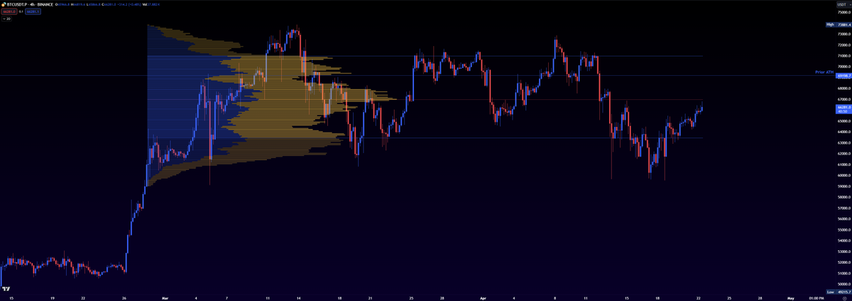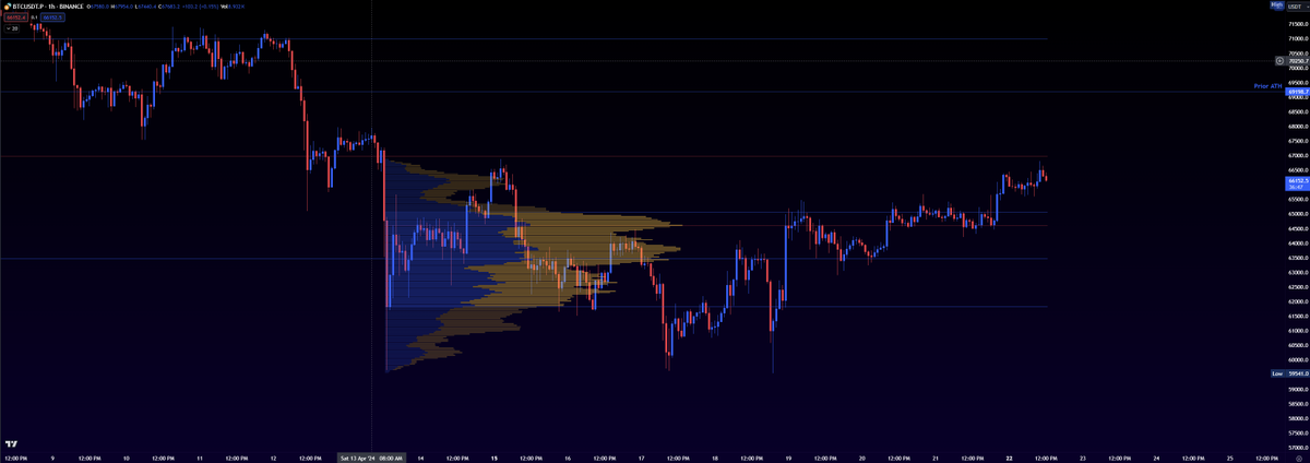 - we know that buyers and sellers are both leaning towards agreeing that in this range, the fair value for buying and selling BTC is ~67,000 (point of control).