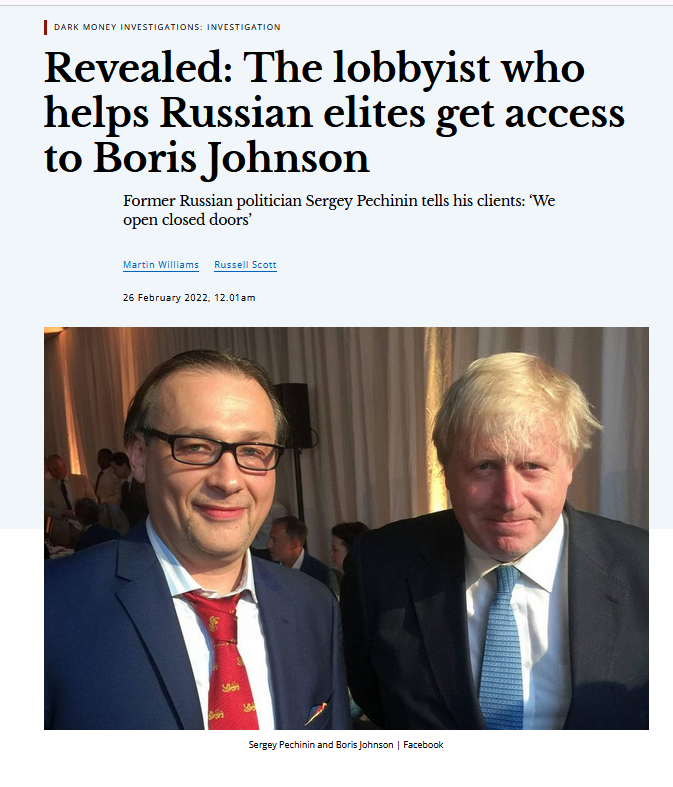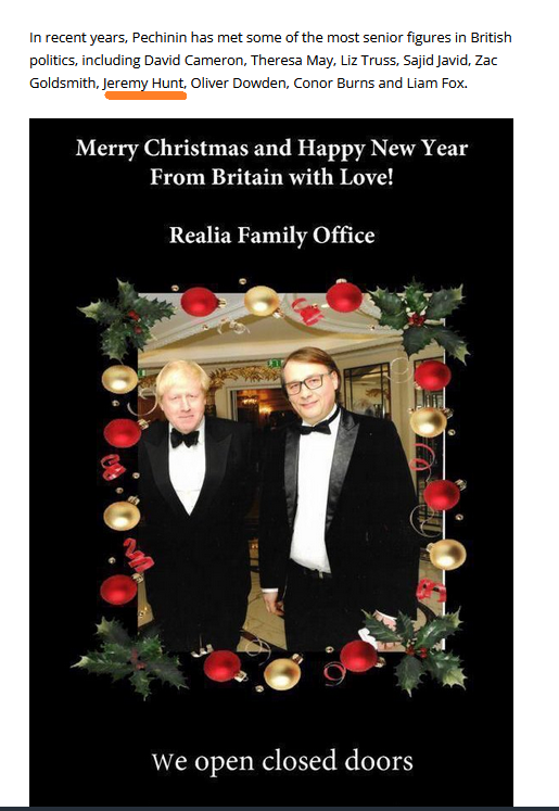 "In recent years, Pechinin has met some of the most senior figures in British politics, including David Cameron, Theresa May, Liz Truss, Sajid Javid, Zac Goldsmith, Jeremy Hunt, Oliver Dowden, Conor Burns and Liam Fox."