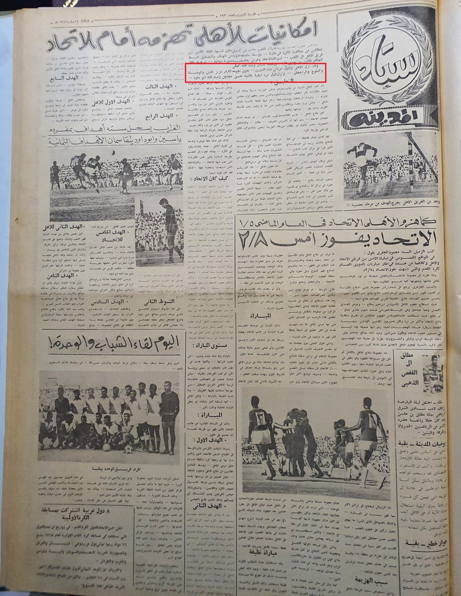 📝 الاهلي كان سبباً رئيسياً في اختفاء الاتحاد في تلك الفترة عن المنافسة بعد ان اكتسح الاتحاد والغربية بأكملها منذ موسم 1967 حتى موسم 1976 وعندما انتصر الاتحاد على الاهلي كتبت الصحف المانشيت التالي: